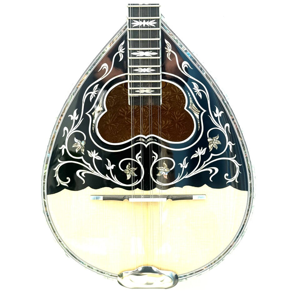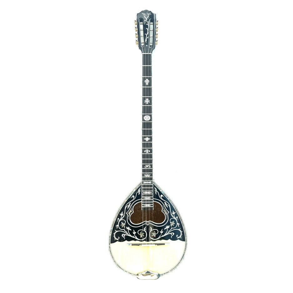 Traditionally used in Greek music post 1960s or the modern era of Greek music, where speed was required in your playing technique. The MV5 features a "AA" grade solid spruce top, dark stained decorated walnut bowl with 20 ribs (douges) and a traditional sound hole.