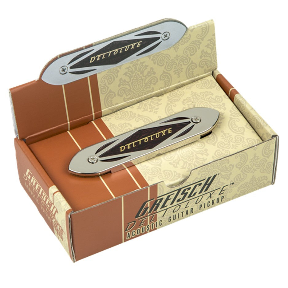 The Gretsch Deltoluxe magnetic soundhole pickup creates versatile electrified acoustic tone and reproduces the true sound of your instrument, without the "quack" of a piezo pickup. This pickup excels when plugged into a small tube combo amp for vintage-inspired bluesy tones to Hawaiian-style slide playing and anything in-between. The tortoiseshell and chrome design is inspired by the timeless look of some of the first pickup designs from the 1940’s while also incorporating modern functionality.