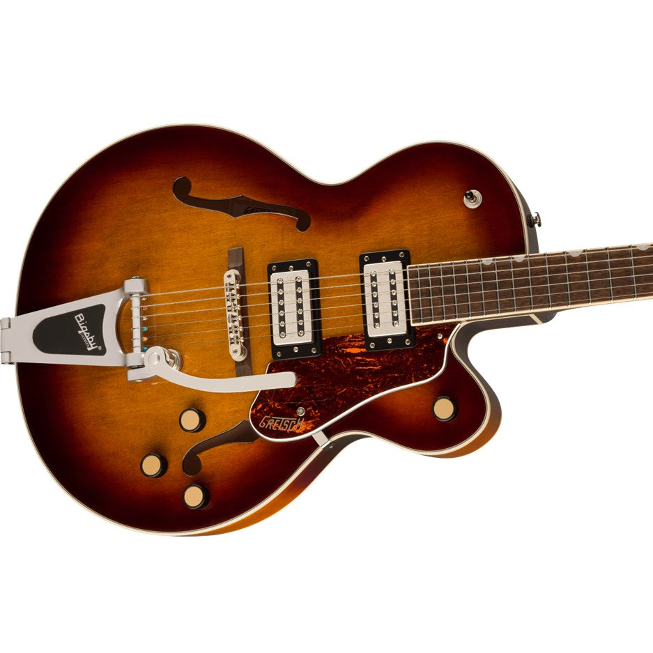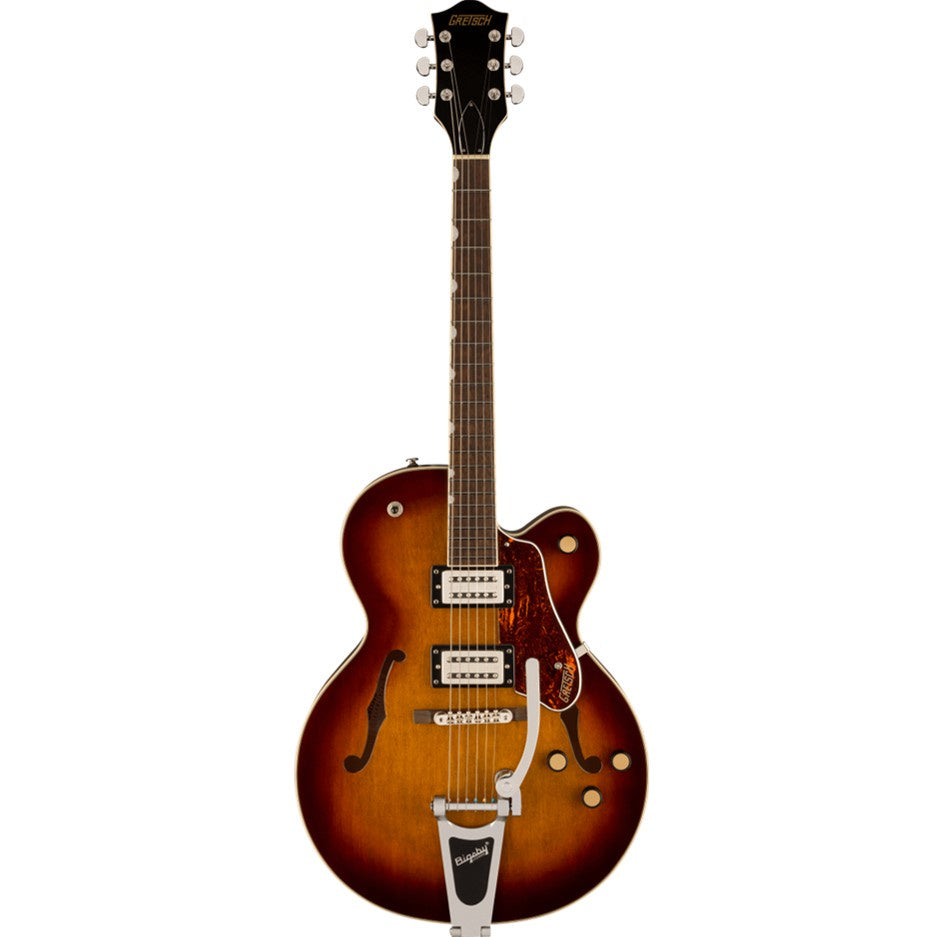 The G2420T Streamliner Hollow Body Single-Cut with Bigsby is designed for the modern guitarist who yearns for something beyond the norm. A commanding guitar for powerful players, the G2420T's modern sonics, updated electronics and authentically elegant style create the latest iteration of That Great Gretsch Sound!
