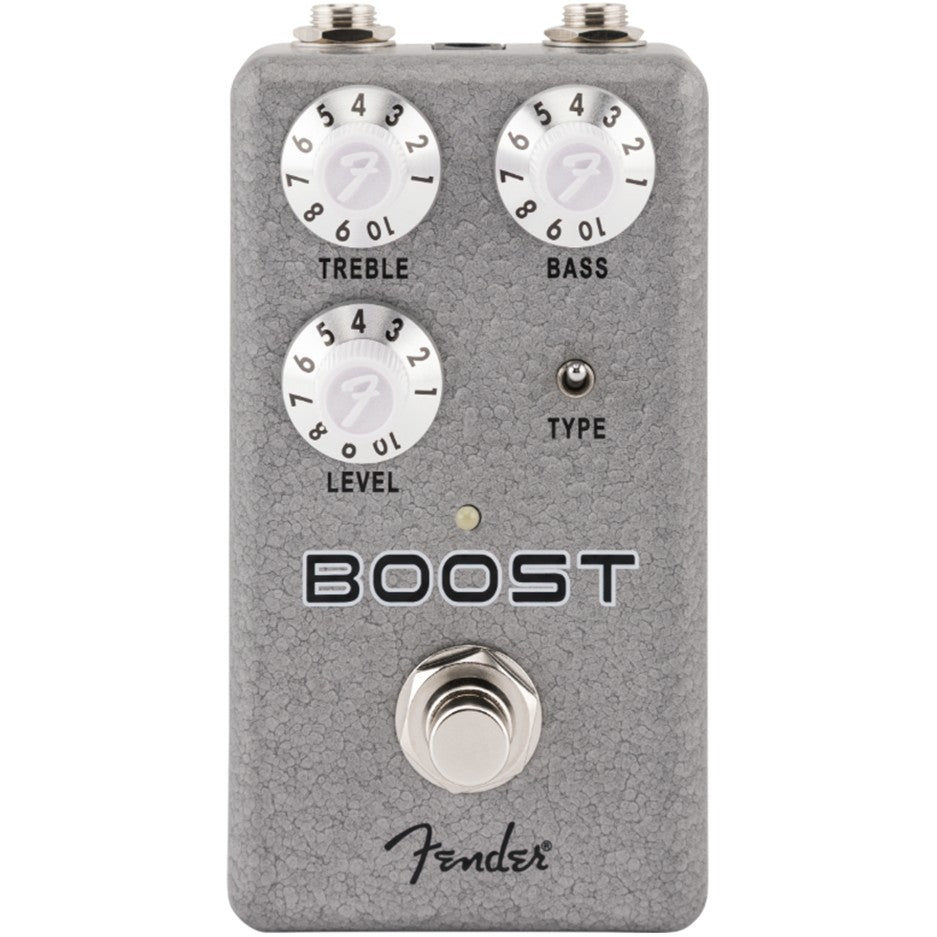 A true double feature, the Hammertone® Boost pushes your signal to new levels with two distinct flavors of boost in one enclosure. Use the Type switch to select between a pristine, clean opamp boost circuit designed for colorless volume boosting and a JFET based boost that fattens your signal with a taste of harmonically rich compression characteristic of preamps in vintage tape units. Easily attain a completely flat boost thanks to the center detents on the Treble and Bass controls or adjust each knob to your liking – boosting and cutting frequencies as you see fit. This all-in-one boost pedal is capable of solo boosting with no added coloration, pushing your amp into breakup, sweetening your core tone, and so much more.