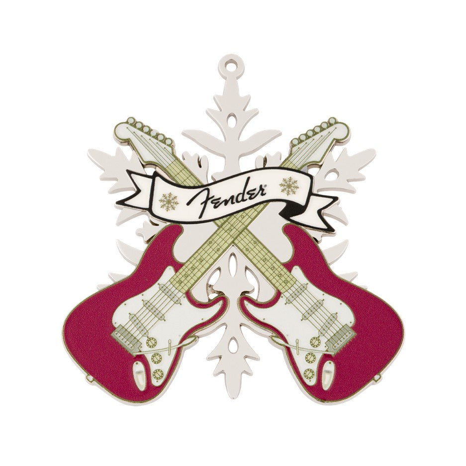 - Elegant snowflake ornament showcasing two crossed Stratocaster guitars