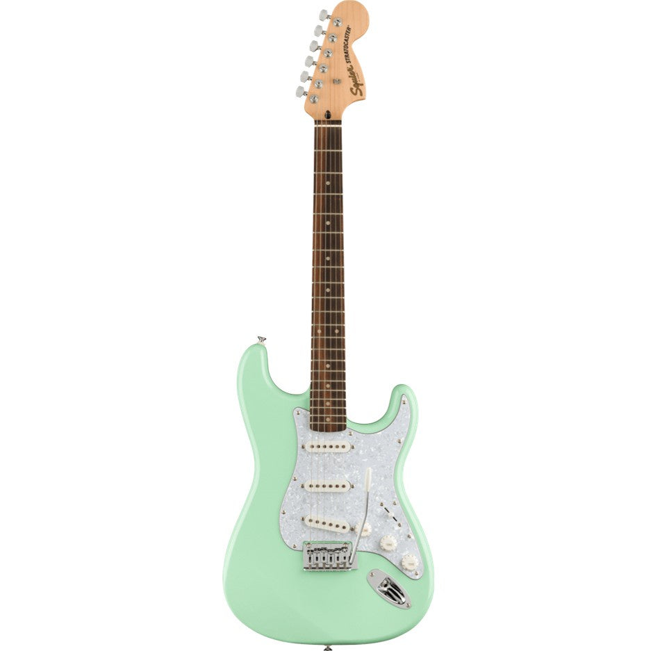 A superb gateway into the time-honored Fender family, the Squier Affinity Series Stratocaster delivers legendary design and quintessential tone for today's aspiring guitar hero. This Strat features several player-friendly refinements such as a thin and lightweight body, a slim and comfortable "C"-shaped neck profile, a 2-point tremolo bridge for superior tremolo action and sealed die-cast tuning machines with split shafts for smooth, accurate tuning and easy restringing. Loaded with a trio of Squier single-coil Strat pickups with 5-way switching for genre-defying sonic variety, this model is ready to accompany any player at any stage.